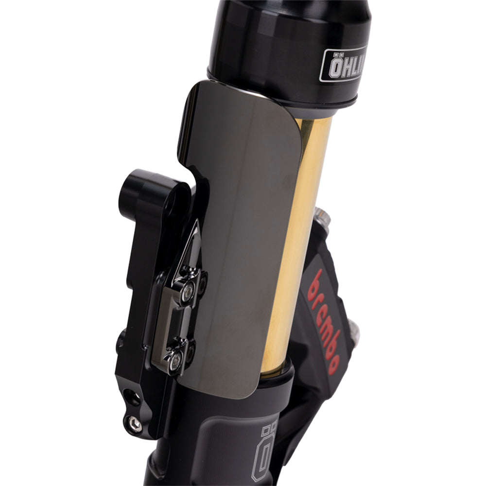 Voici nos nouveaux garde-fourches OG pour modèles Touring CVO 2023 à aujourd'hui ! Usinés dans un bloc d'aluminium massif, ces protections de fourche inversée offrent une protection accrue grâce à leur surface plus importante, protégeant efficacement les tubes inférieurs de votre fourche. Conçus spécifiquement pour s'adapter aux fourches d'origine des modèles Touring CVO de 2023.5 à aujourd'hui, au kit de fourches inversées Screamin' Eagle / Öhlins et aux fourches avant inversées Öhlins FGRT 307 Touring CVO, ces supports se fixent directement.