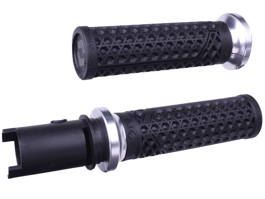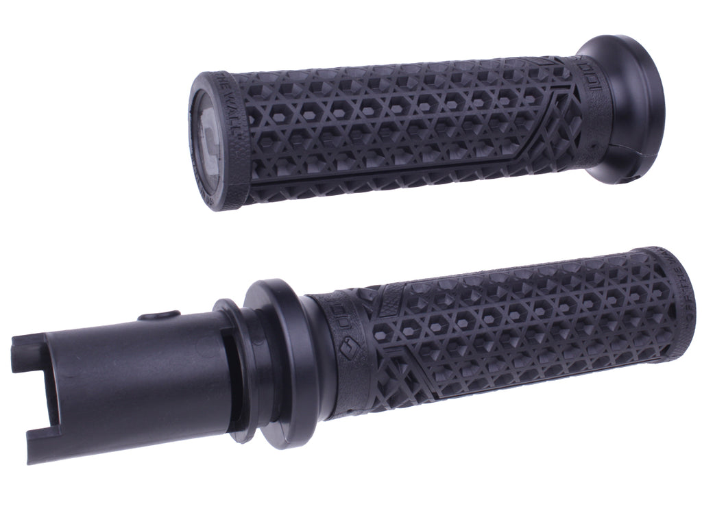 Le nouveau système VANS V-Twin Lock-On Grip est doté du motif de semelle gaufré classique Vans® conçu pour vous offrir une expérience de conduite incroyable. Construit dans une poignée de diamètre moyen qui offre une traction incroyable sur la paume tout en offrant un amortissement supplémentaire des vibrations. La technologie ODI Lock-On™ authentique offre le système de montage le plus sécurisé tout en permettant une installation et un retrait faciles. Chaque ensemble est livré avec un tube d'accélérateur moulé spécifique à votre modèle. Le système de serrage éprouvé en billette d'aluminium est disponible dans des couleurs anodisées pour correspondre à votre construction !
